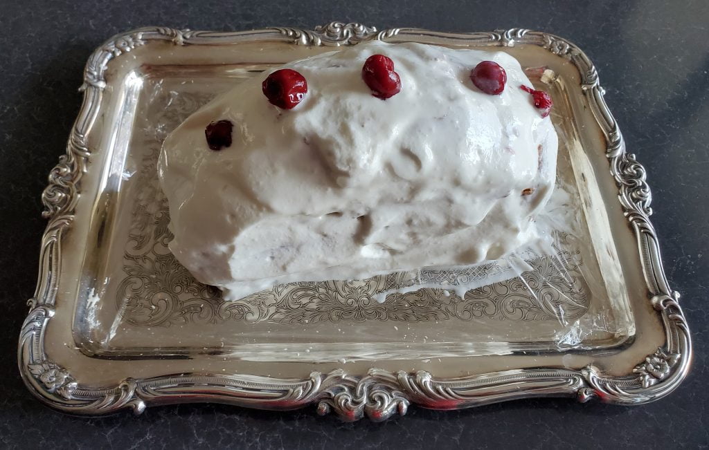 - Add a little more whipped cream from the can onto the cherries and smear with the knife or spatula to even the coverage.