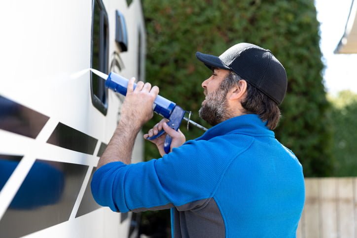 - Check the window and door seals: Examine the seals and caulking around your RV windows and replace any areas that are missing or weak. Replace weather stripping around exterior doors to prevent cold air or moisture from leaking in.